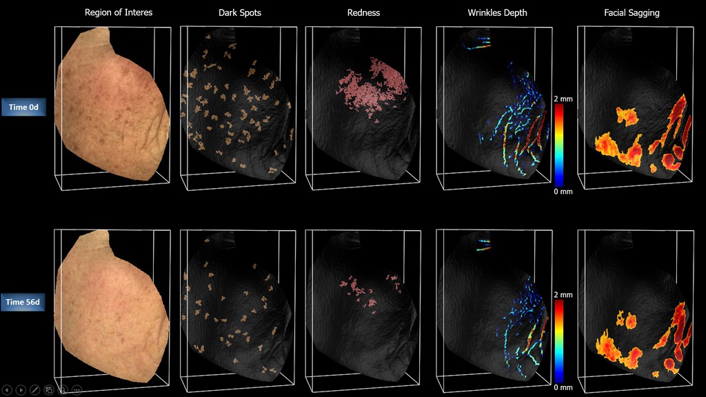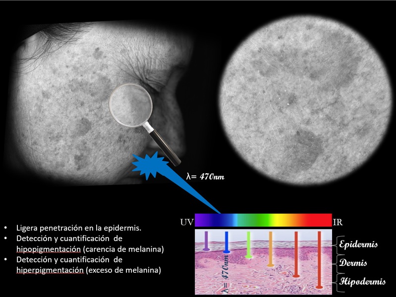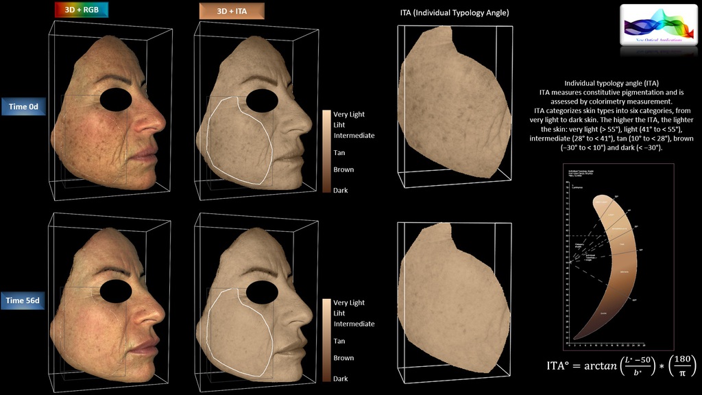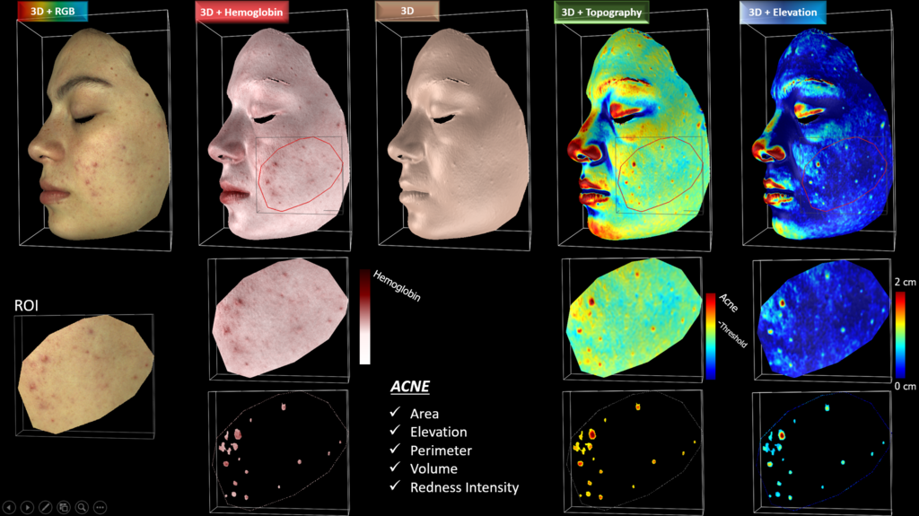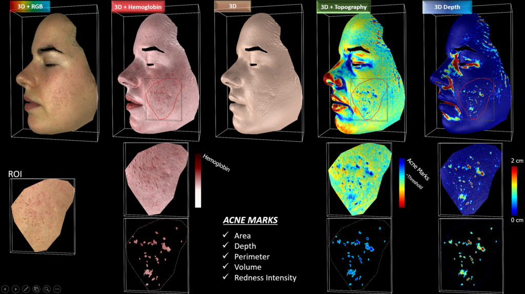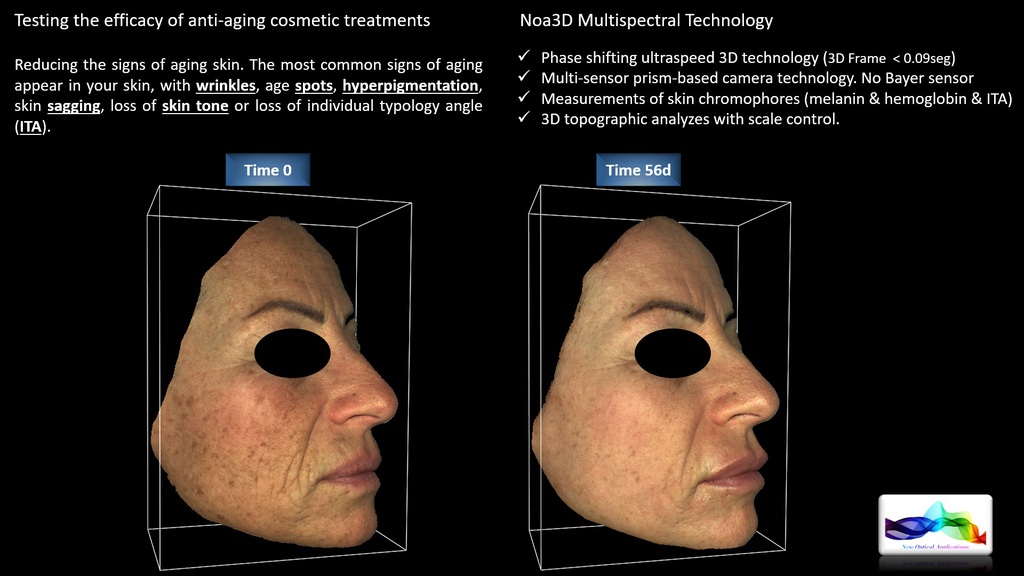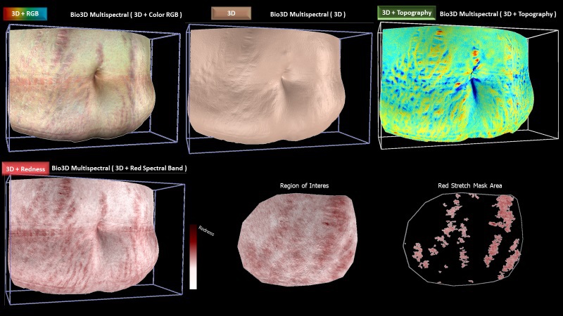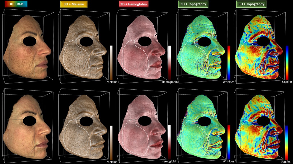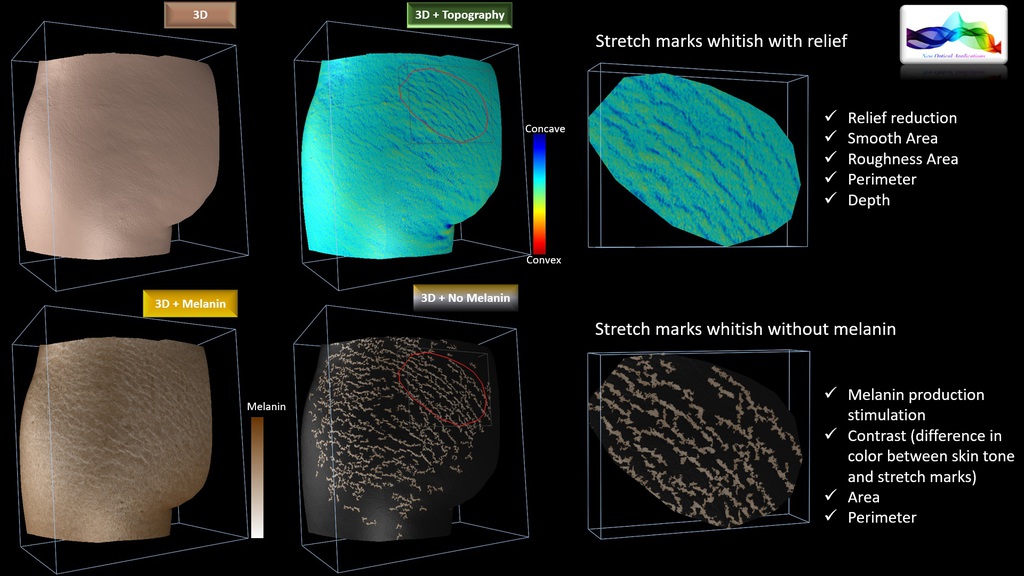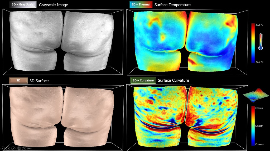 NOA3D with Multispectral Imaging allows us to assign relief to a 2D image or to assign spectral information to a 3D reconstruction. In this way we have at our disposal the possibility of selecting by ‘colour’ the presence of melanin and/or haemoglobin for subsequent quantification in the three-dimensional space or performing a topographical analysis of the object's surface to discriminate concave and convex regions for subsequent photometric quantification.