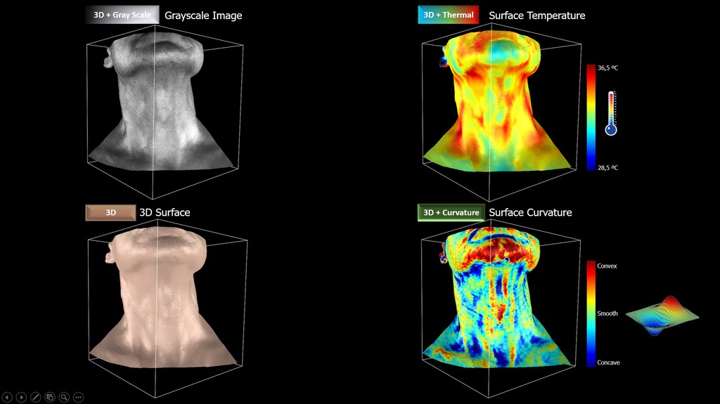 3D information allows us to perform topographic analysis of the object's surface. We can evaluate the surface based on its curvature and discriminate concave and convex regions. In this way we can extract and select different regions according to their topography and perform a selective thermal analysis.