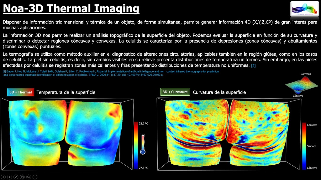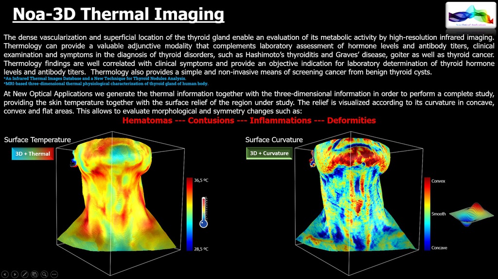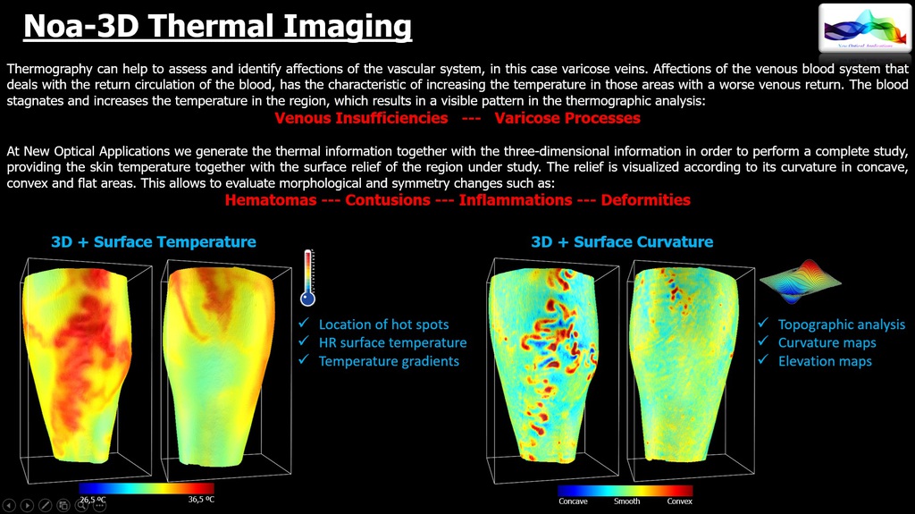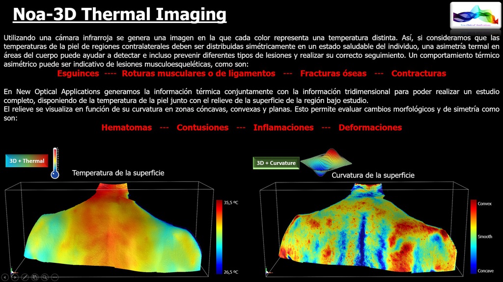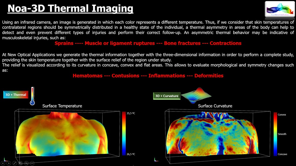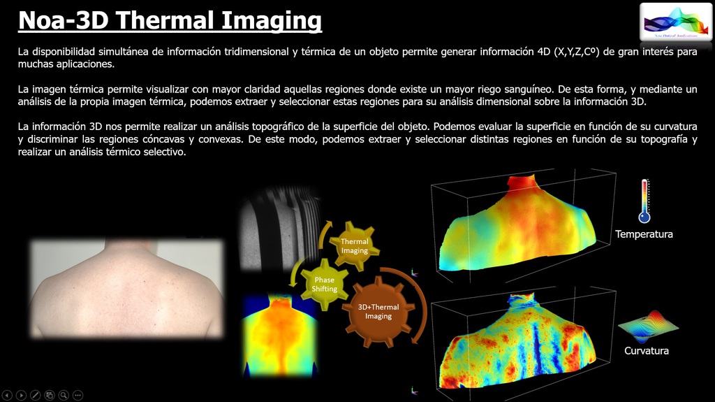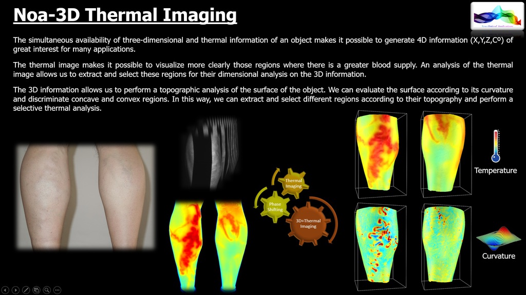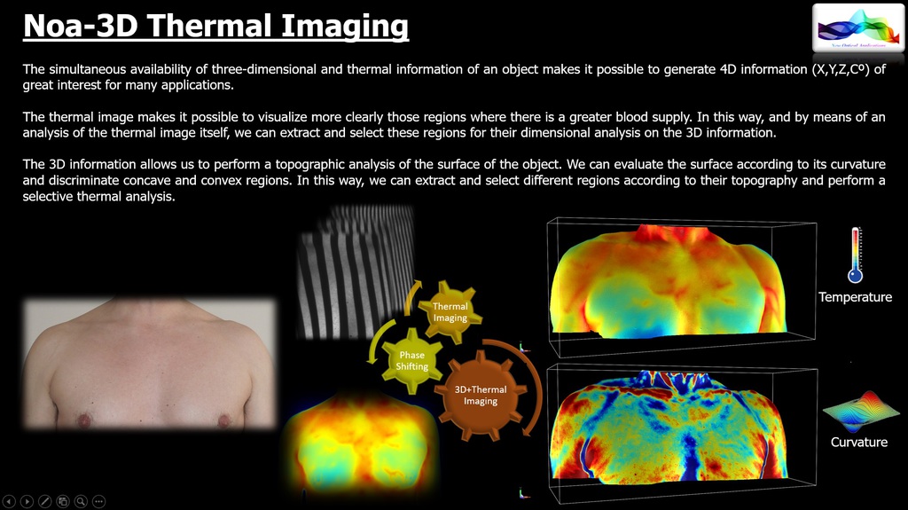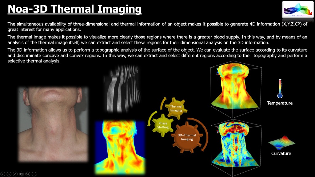NOA3D with Thermal Imaging. The simultaneous availability of three-dimensional and thermal information of an object makes it possible to generate 4D information (x,y,z,Cº) that is of great interest for many applications.